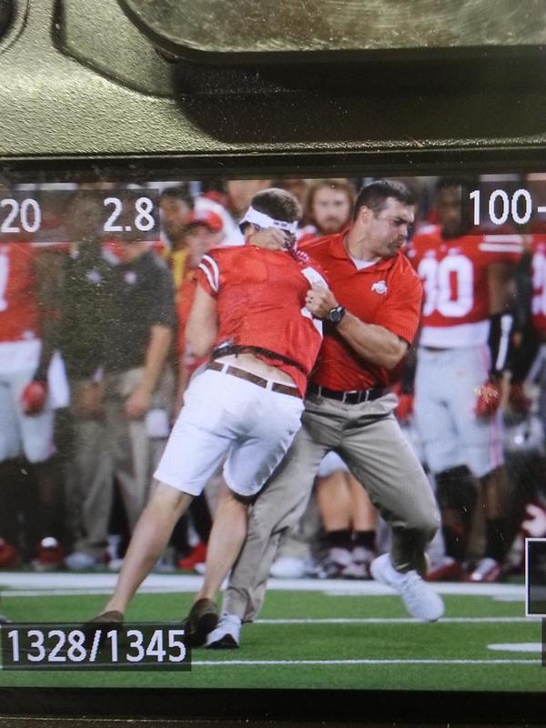 Ohio State Strength Coach Bodyslams Fan on the Field